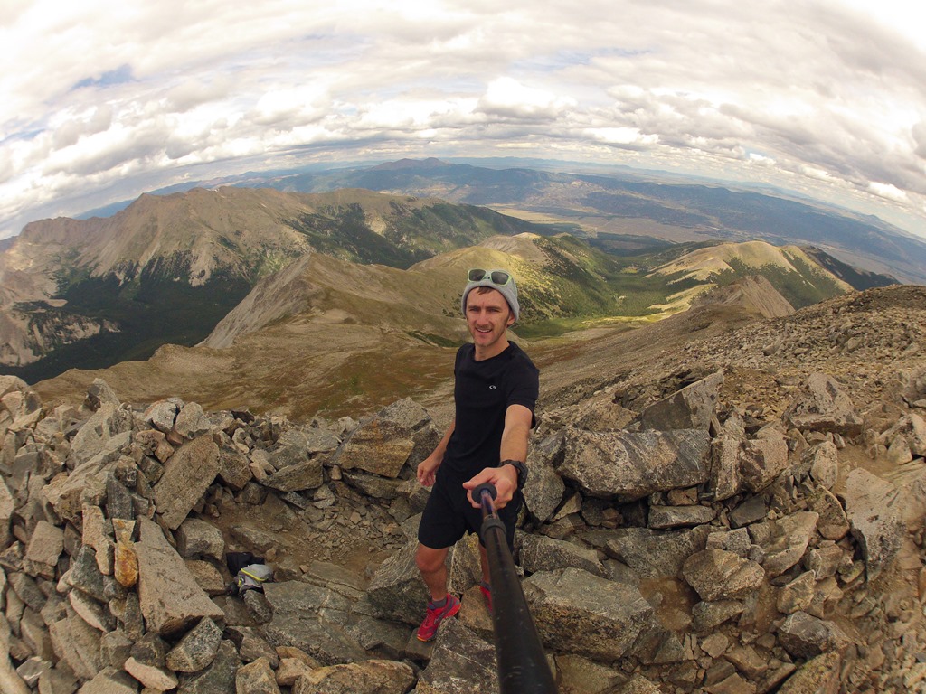 The hike up Mt. Yale was a little longer than Princeton but the weather held out and it was a perfect day to chill out on the summit and enjoy a snack and laugh at the wild life. There was a very curious goat that scared me half to death, I was sitting down in the pile of rocks in the picture below and he just cruised right up and peeked his head over the ledge. I am pretty sure he did not see me because he scampered away as soon as he realized there was a person sitting there.
