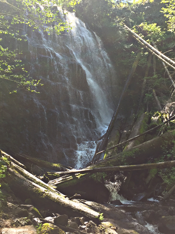 Before I knew it 8AM rolled around and we were off running. I knew there was a big 1500ft climb in the first 3.5 miles so I forced myself to take it easy on the climb. The best thing about grinding up a big climb is knowing that you have a big downhill to follow that up. The 5 mile rolling descent off of the first big climb was my favorite section on the way out. This descent took you down a perfect piece of single track that switched back and forth down into a gulley. I was very distracted by all of the waterfalls I passed on this section of the trail. At this point of the race (mile 10) I was on cloud 9. I had hopes of a sub 6 hour 50K and a PR for the day.